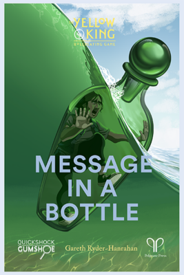 In early 2021, GUMSHOE designers Robin D. Laws, Kenneth Hite, and Gareth Ryder-Hanrahan came together for an online mystery scenario design workshop using The Yellow King Roleplaying Game as a framing mechanism. (ICYMI, you can watch that workshop on our YouTube channel). Gareth, as is his wont, agreed to write up the adventure the three co-designed during the workshop, and Message in a Bottle is the result of that write-up.