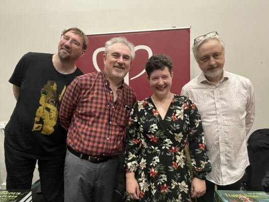 We’re just back from another brilliant Dragonmeet, held – for, we hear, the last time – in the Hammersmith Novotel in London. Ken, Robin, Gareth and myself joined Simon and booth stalwarts Jay Godden and Elina Gouliou for the fastest day of the year. It was great, as always, to catch up with everyone, and if you missed the Pelgrane Swords, Spies and Shoggoths panel, you can listen to it on our YouTube channel here.